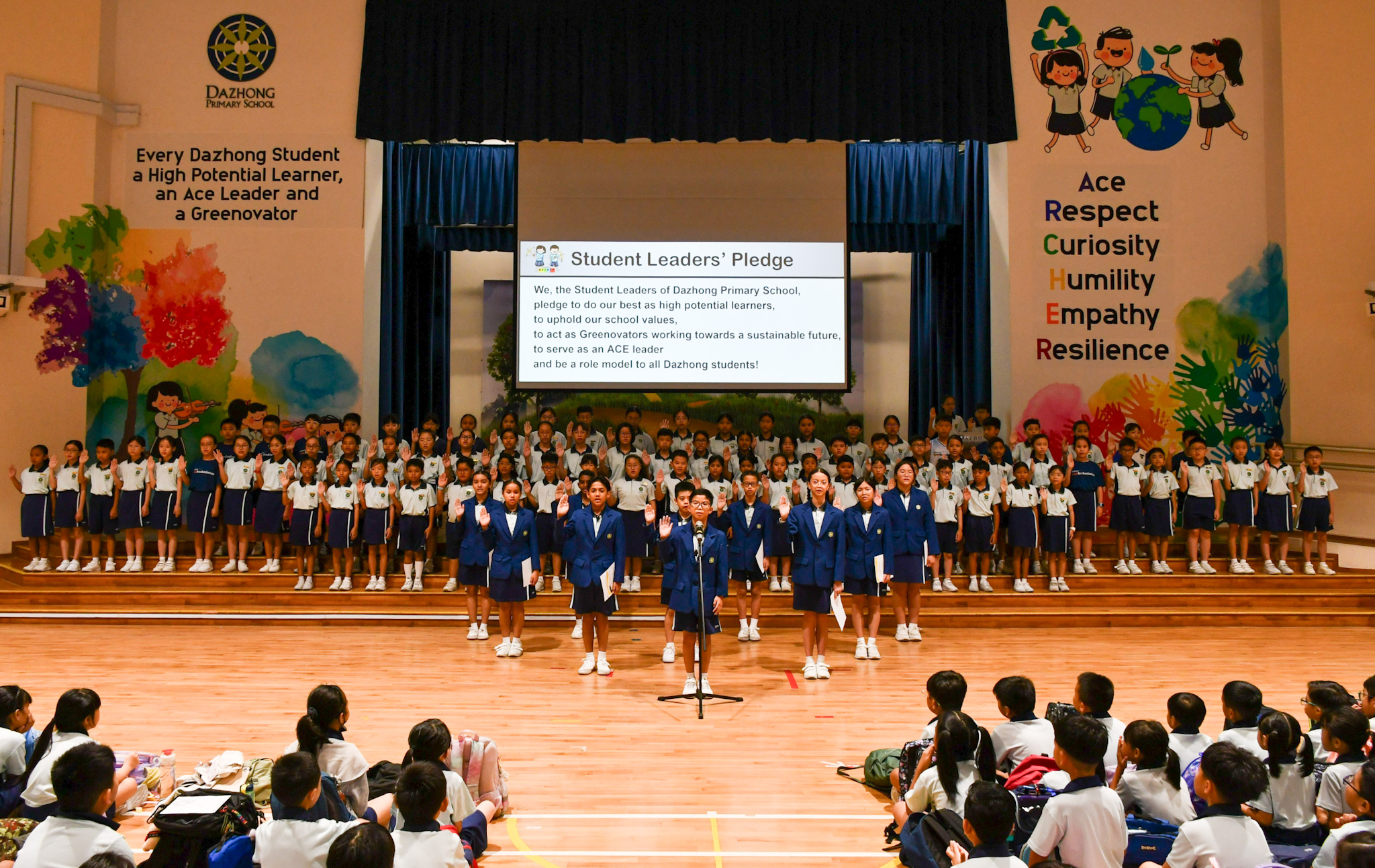 At Dazhong Primary School, Student Leadership is an integral part of our holistic education approach. Guided by our belief in “Every Student, An Ace Leader”, we are committed to nurturing confident, compassionate and responsible leaders who lead with purpose, character and heart.