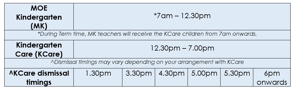 MOE Kindergarten (MK) Programme & Operating hours